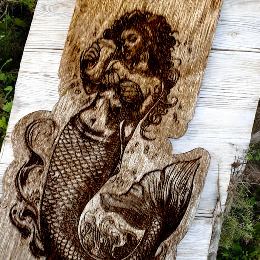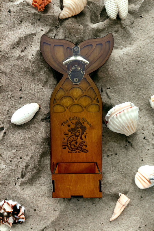 Wood Mermaid magnetic bottle cap opener catcher