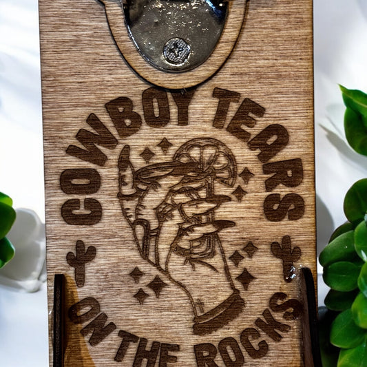 Wood Cowboy Tears magnetic bottle cap opener catcher