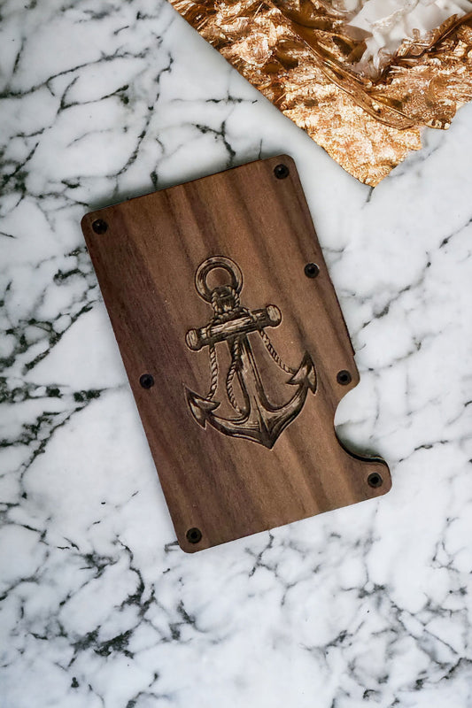Engraved wood wallet money clip